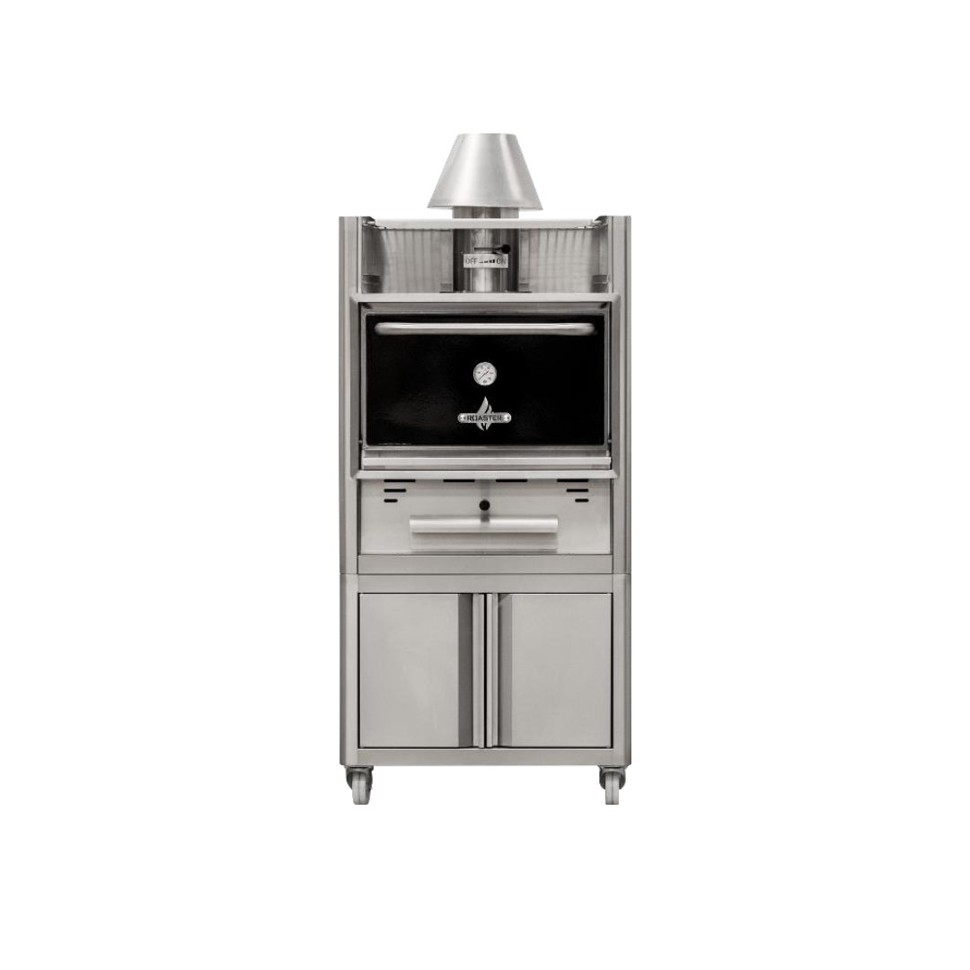 La Parrilla Grill Roaster combina diseño ergonómico con un sistema de elevación que permite ajustar la altura de cocción en diferentes niveles. Con opciones de parrillas en V o varillas, recogegrasas, y estructura aislada, ofrece una experiencia segura y eficiente para el asado profesional.